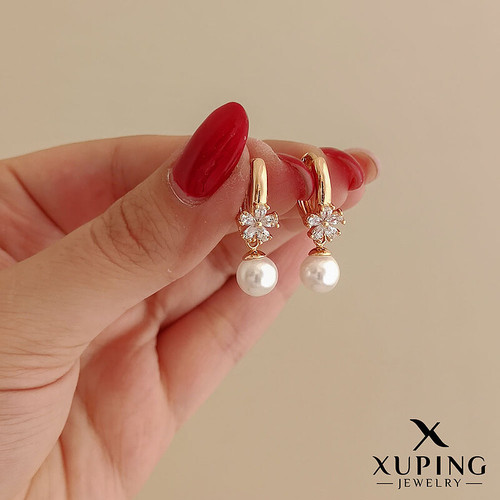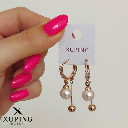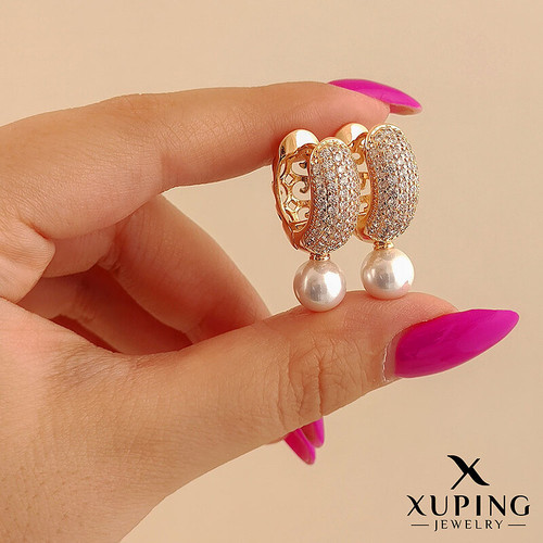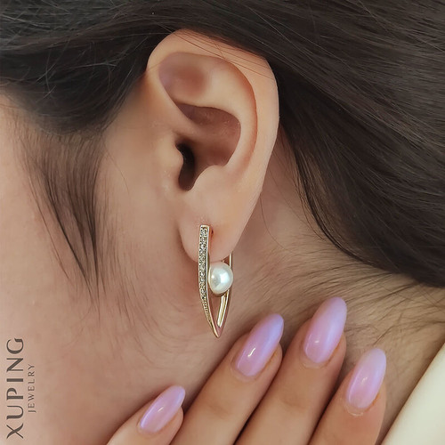 ناموجودگوشواره آویز مروارید و نگین ژوپینگ