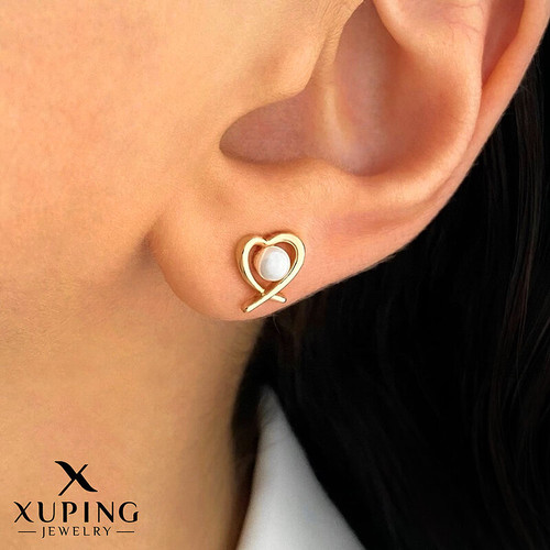 گوشواره سوزنی قلب و مروارید ژوپینگ
