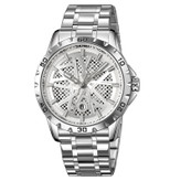 بند استیل: بند استیل با کیفیت بالا، مقاومت و دوام این ساعت را افزایش داده و ظاهری لوکس به آن می بخشد.